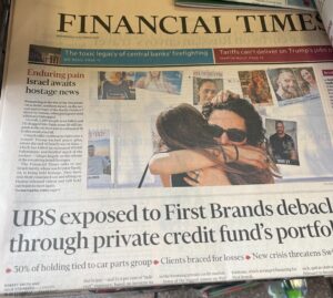 Die letzte Schweizer Grossbank hat jetzt mit First Brands ihr „eigenes“ Greensill. Wie schlimm der Fall wird, kann noch nicht abgeschätzt werden; er gesellt sich zu den Dollar-Turbo-Derivaten, mit denen Schweizer Kunden im April ihr Waterloo erlitten.