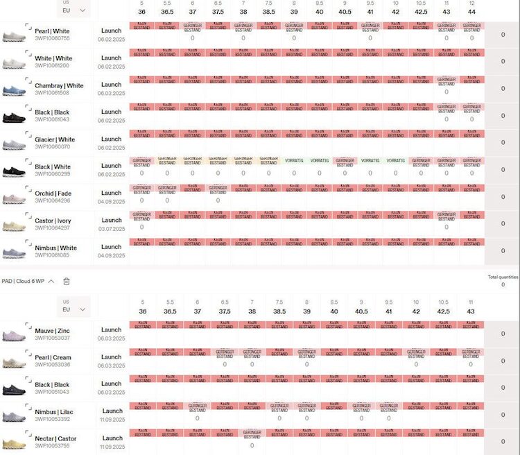 Kaum ein Modell, kaum eine Grösse, die tatsächlich verfügbar ist.