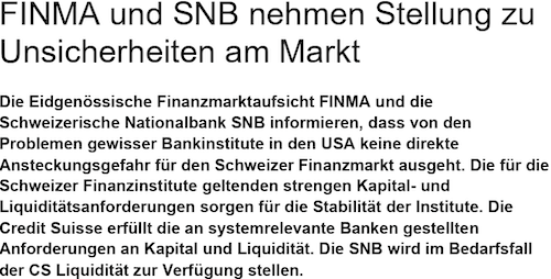 Der Fokus lag auf dem Flüssigen, nicht dem Kapital. So meinte der Lender of Last Resort: „Die SNB wird im Bedarfsfall der CS Liquidität zur Verfügung stellen.“