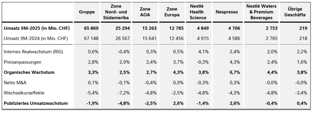 Auch in Asien und Pazifik verlor Nestlé massiv: minus 2,5 Prozent. Einzig in Europa zeigten die Verkäufe nach oben, da gabs ein Plus von 2,6 Prozent