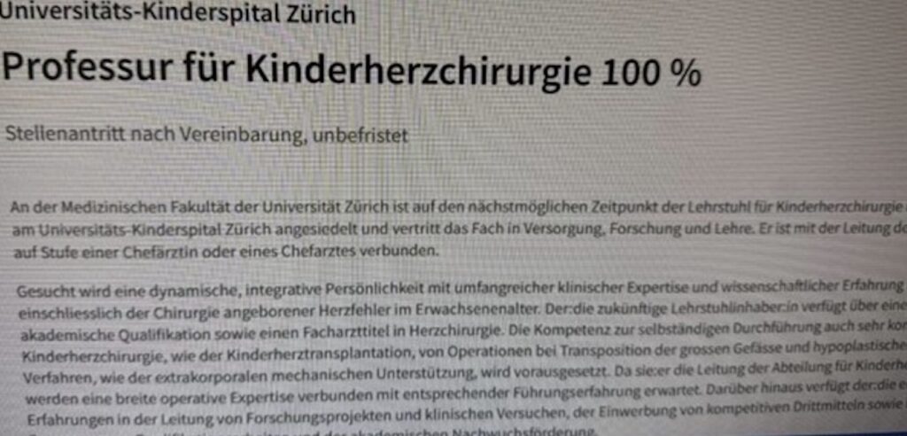Gesucht: Neuer Chefarzt für Kinderherzchirurgie – schon wieder. Die Schlüsselstelle des Kinderspitals Zürich (Kispi) ist erneut vakant.