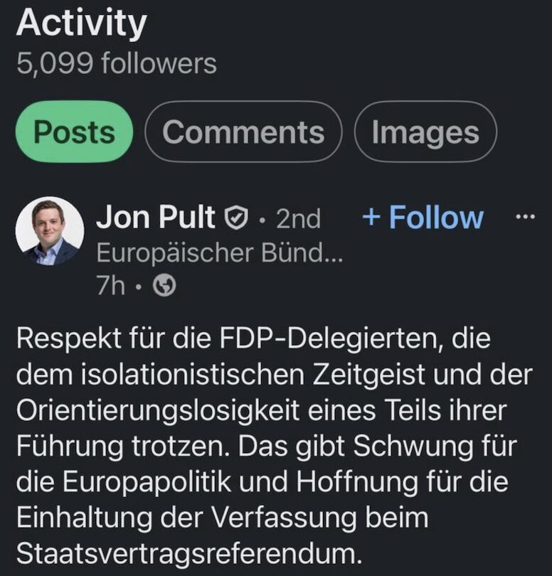 Dieses habe „das letzte Wort“. So steht es auch im „Erläuternden Bericht“ des Bundes vom Juni 2025, und in diesem Sinne hat der Aussenminister, welcher bekanntlich der FDP angehört, am Samstag gesprochen.