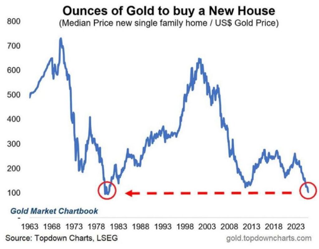 Der alte Gold-Rekord wurde in USD erst 2007 und in CHF erst 2009 wieder gebrochen. Der gezeigte chart Gold / family home kann auch als Warnung interpretiert werden: „Achtung neuer Rekordpreis für Gold, danach wieder 20 magere Jahre.“