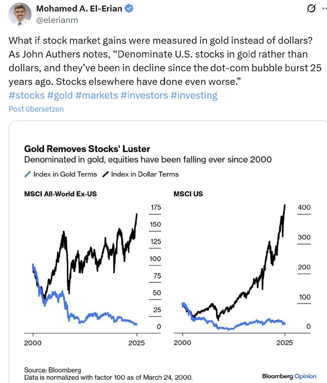 Es geht nicht um Kurssteigerung, sondern um Kaufkraftverlust. El-Erian liefert den Denkanstoss: Nicht Gold steigt – alles andere fällt.