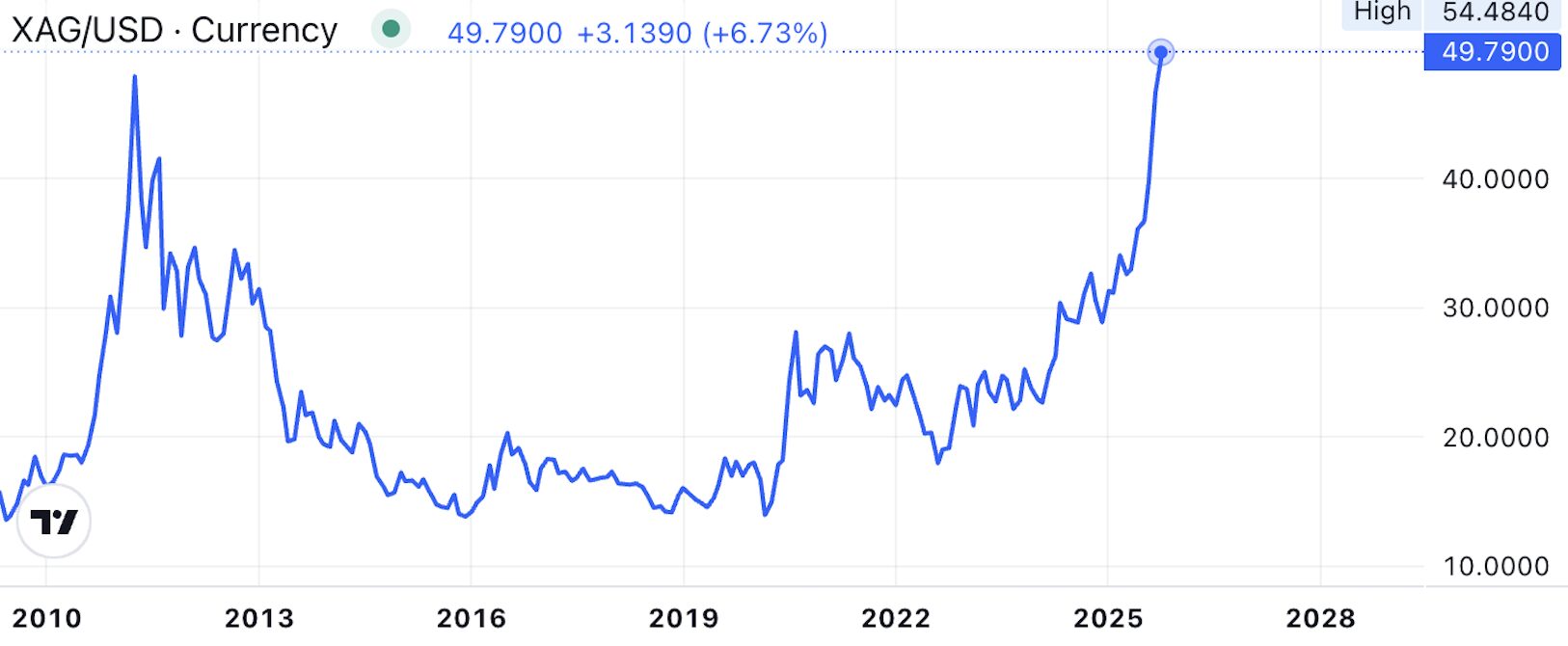 Wer sich mit Silber nicht auskennt, soll die Finger davon lassen. Der Markt ist klein, viel Geduld ist gefragt. Angsthasen und FOMOs sind immer zu spät dabei und zu früh wieder raus. Ich bin schon seit vor 2011 dabei. Und habe bis heute nur gekauft. Übrigens was Russian Market nicht erwähnt, sind die massiven jährlichen Defizite im Silber (siehe Silverinstitute), die gestiegene industrielle Nachfrage (KI, Waffen, Solar etc.), dass die USA Silber als kritisches Metall dieses Jahr eingestuft haben und die Remonetarisierung der Edelmetalle durch Zentralbanken. Das war 2011 nicht der Fall.