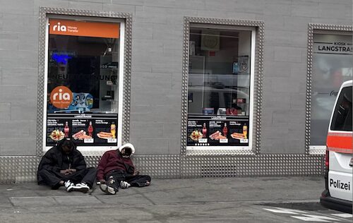 Ist Zürich. Was erwartet man hier? Der Schatten des Reichtums ist das Elend. Normalerweise würde man dies verstecken, aber Zürich integriert dies ins Stadtbild. Ja und es passt auch irgendwie zu den Bahnhof Asylanten.