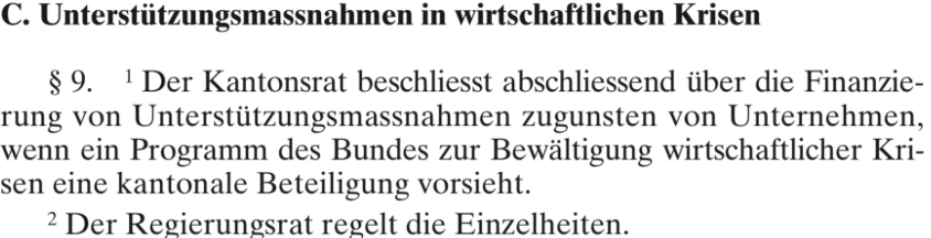 In künftigen Wirtschaftskrisen soll der Kantonsrat abschliessend „Unterstützungsmassnahmen“ bewilligen können. Diese kosten naturgemäss erheblich.