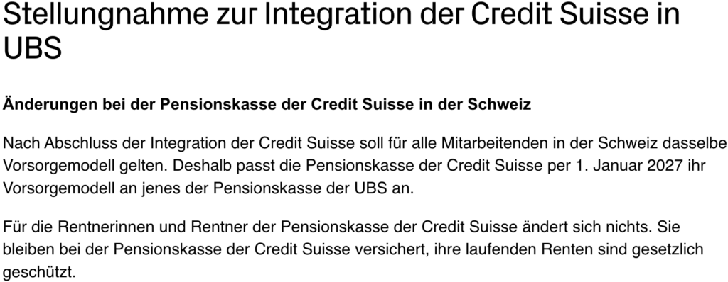 Es handelte sich um den entscheidenden Unterschied der beiden Pensionskassen. Jetzt plane der Stiftungsrat, sprich die zuständige Oberleitung der CS-Altersvorsorge, eine komplette Angleichung ans UBS-Modell.
