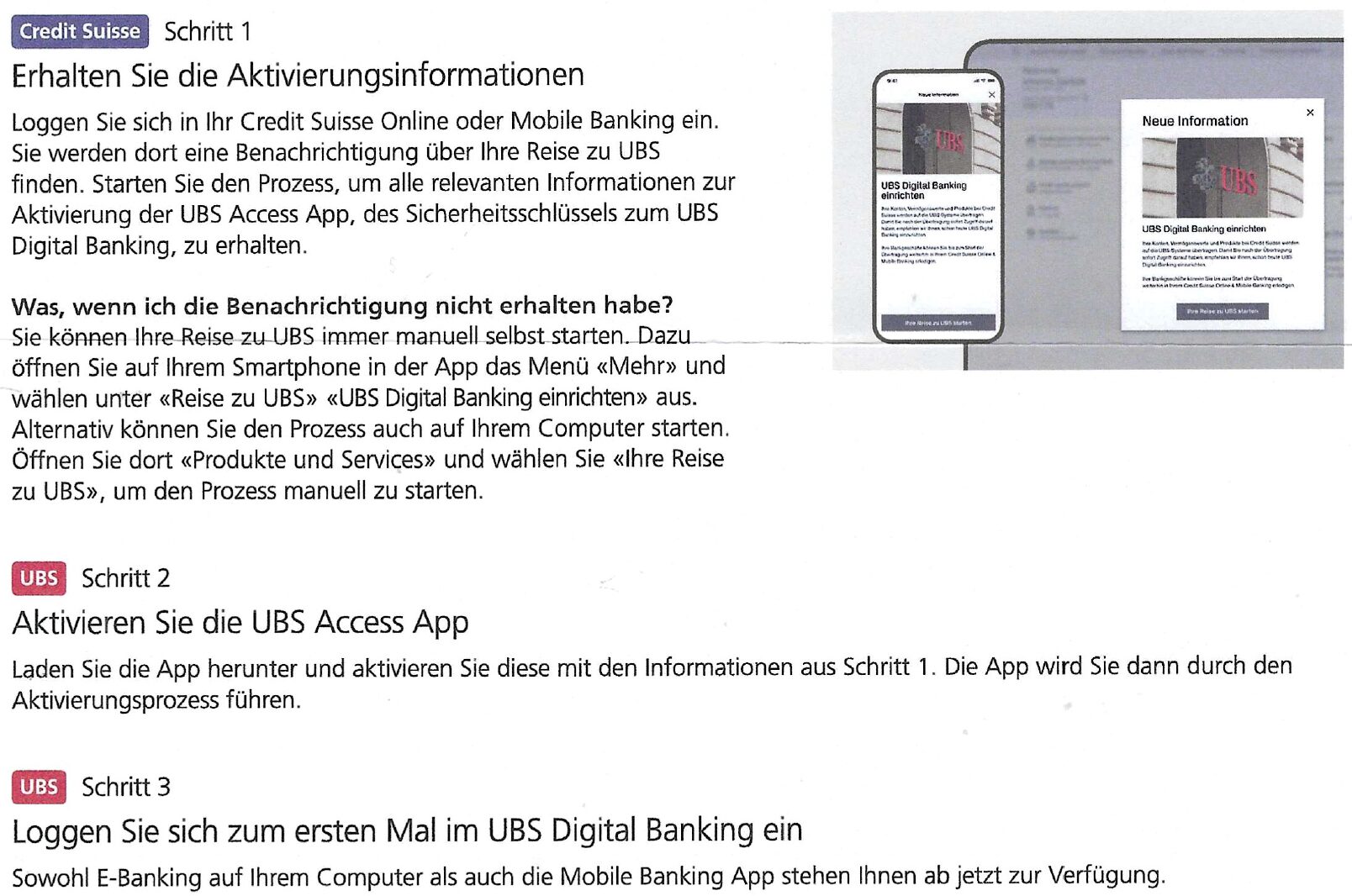 Am Montag, nach dem „Übertragungswochenende“, könne man dann alle „Bankgeschäfte im UBS Online Banking erledigen“.