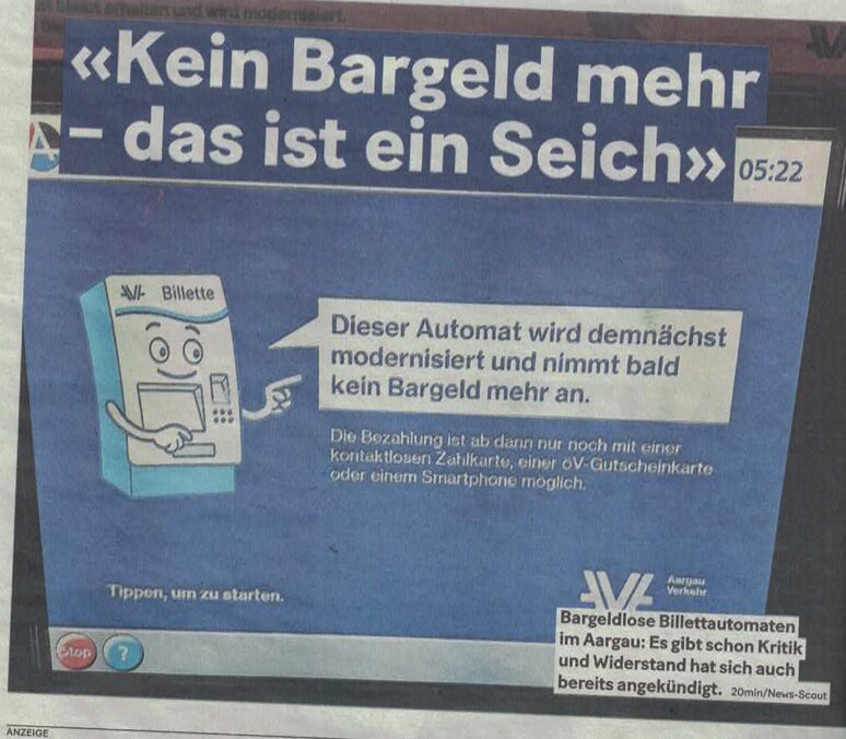 Aus dem Aargau hiess es noch Anfang September: „Kein Bargeld mehr – das ist ein Seich“.