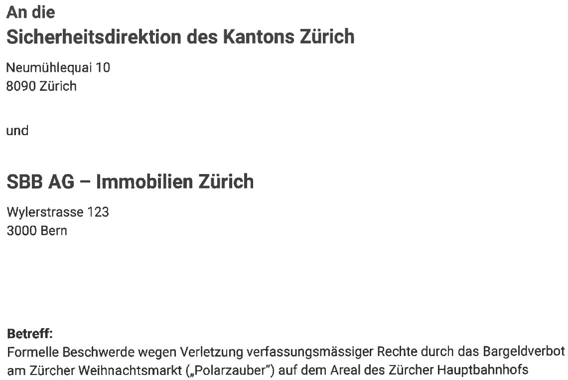 Zudem drohte ein Bürger mit Absender eines Vereins namens „Schweiz-Macher“ mit Klagen. Er hatte Beschwerden beim Kanton Zürich und der SBB eingereicht.