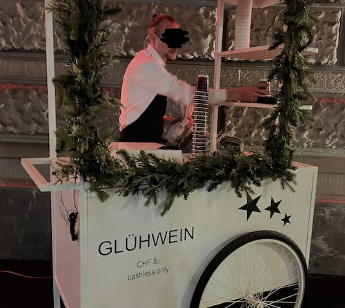 Der junge Typ mit dem hippen Haarknoten am Glühwein-Stand vor dem neuen Grieder an der Bahnhofstrasse machts ein für allemal klar.