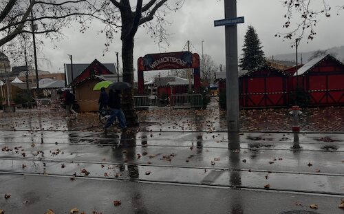 Kaum hatten diese ihre Hellebarden versorgt, krachte die nächste Front. Das Weihnachtsdörfli am Bellevue, x-mal grösser als das vom HB, hat null Bock auf Einfränkler.