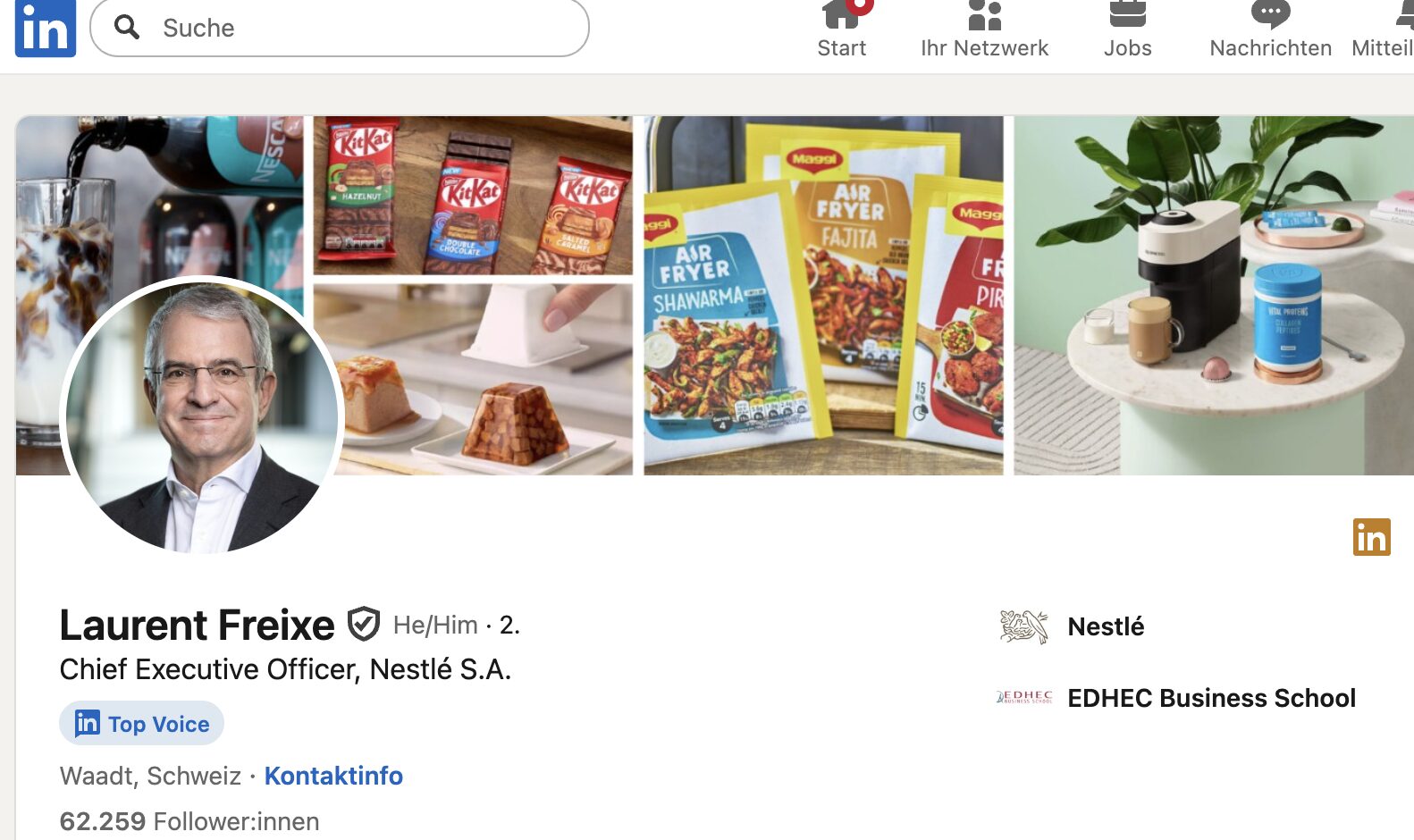 Bei der Nestlé musste Freixe vor 3 Monaten Knall auf Fall den CEO-Job hergeben. Doch auf seinem LinkedIn nennt er sich bis heute Chief Executive Officer des Food-Multis.
