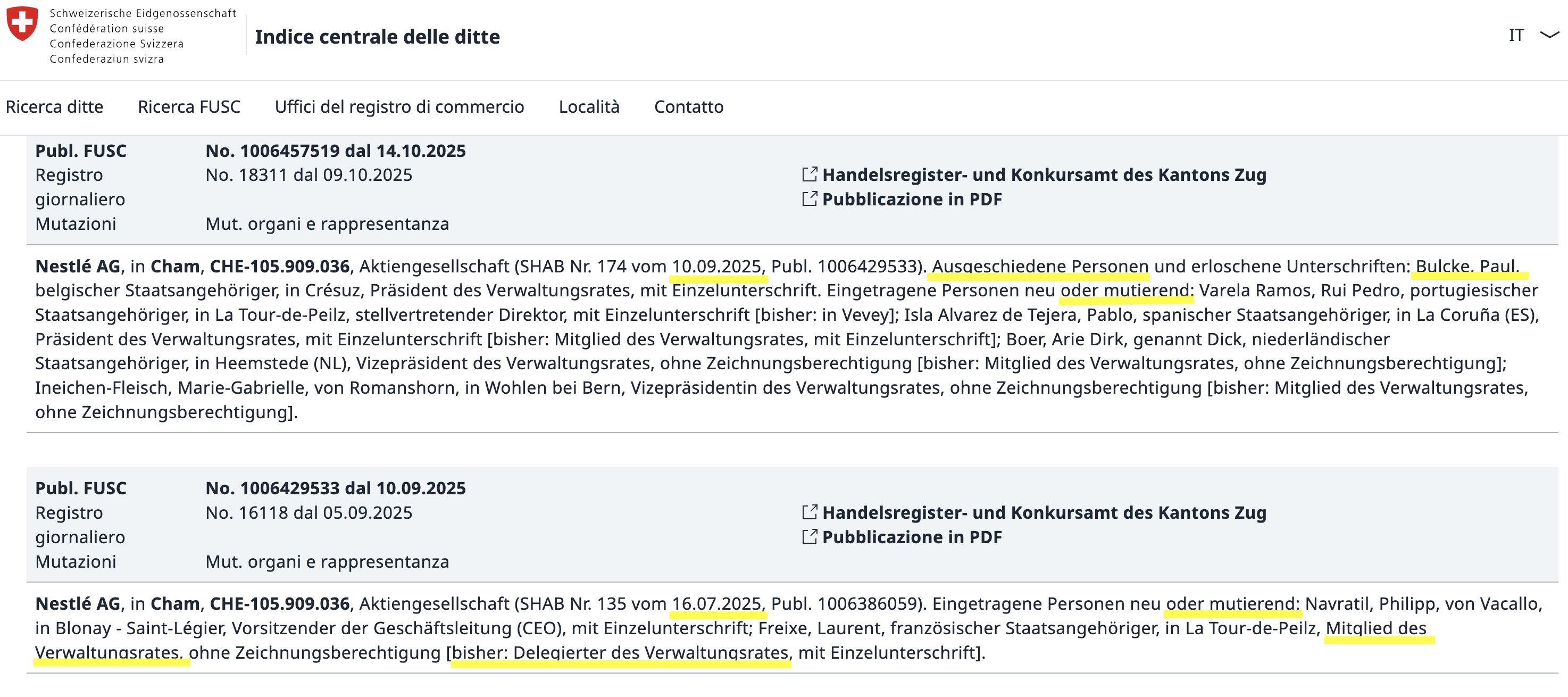 Anders ist das bei der Nestlé Cham, wo er einfaches Mitglied war – und laut dem offiziellen Eintrag immer noch ist.