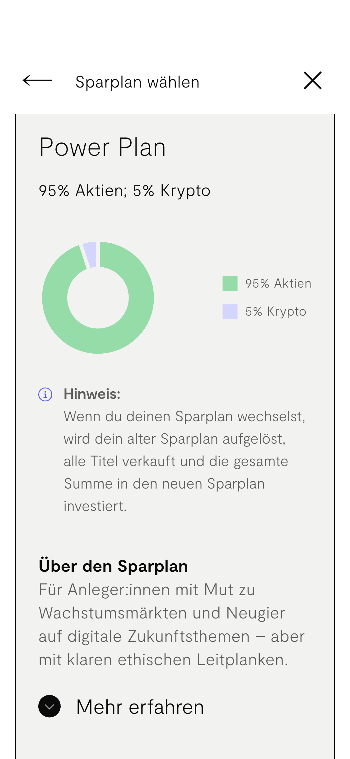 Beim „aggressivsten“ Sparplan, genannt „Power Plan“, landen Kundengelder in Kryptos. Wie Ellexx sicherstelle, dass ungeübte Kunden nicht diesen Plan wählten, wollte man wissen.