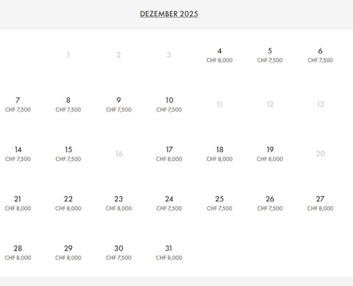 Nur an einem Tag im Dezember kann man keine Junior-Suite buchen. Die Zimmer mit einer Lounge kosten um die 2’000 Franken.