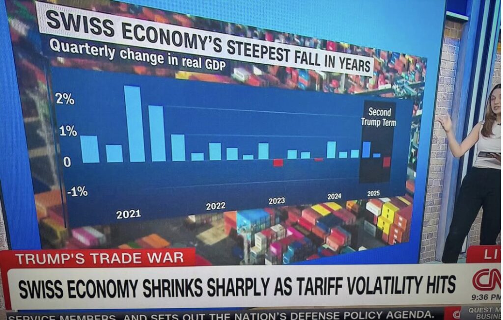 „Swiss Economy Shrinks Sharply as Tariff Volatility Hits“, vermeldete soeben das grosse CNN-TV.