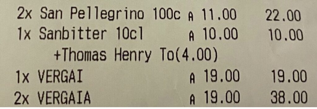 „Den Restaurantverkaufspreis erachten wir (…) als fair“, heisst es von Bindella. „Den aktuellen Jahrgang Vergaia 2022 verkaufen wir in unseren Bindella Vinotecas für 79 Franken pro Flasche.“