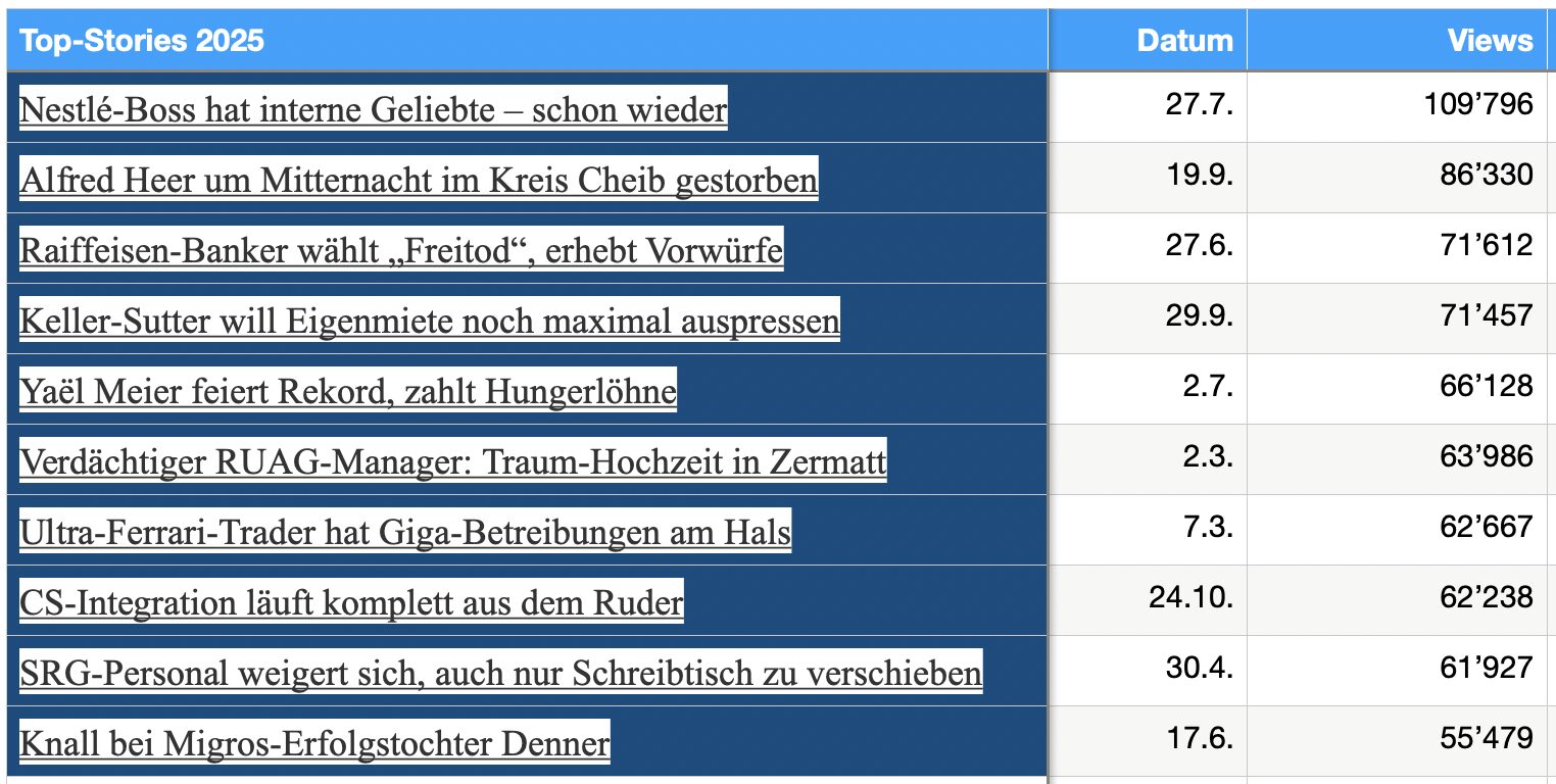 Ich wünsche Ihnen ein gutes neues Jahr und freue mich auf viele weitere journalistische Knaller im 2026.