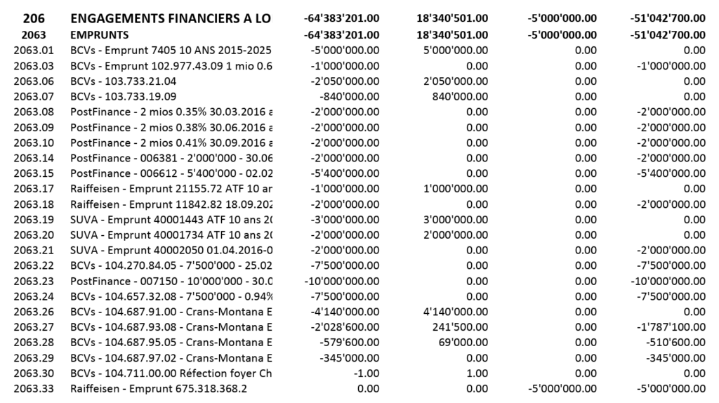 Insbesondere die Waadtländer Kantonalbank (BCV) und die Suva haben ihre mehrjährigen Darlehen nicht erneuert, die Raiffeisen gewährte hingegen einen neuen Kredit von 5 Millionen, der unter den langfristigen Schulden verbucht wurde.