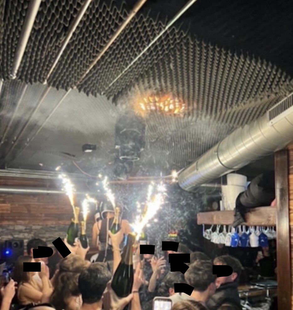 Wollten sie Spuren verwischen der installierten Lärm-Matten, die wegen Wunderkerzen auf Champagner-Flaschen Feuer fingen?