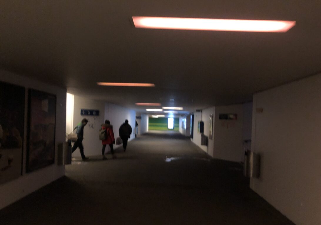 Sein Sie vorsichtig, bei Ihnen in Wetzikon kommt noch die Fachstelle Fledermaus aus Zürich und verbietet in Zukunft generell Licht in der Unterführung. Und ja, glauben Sie ernsthaft die Gefahren seien vorbei wenn Sie aus dem Tunnel sind? Nicht in der Schweiz und nicht in Wetzikon, das ist alles vorbei. Tragen Sie eine Waffe mit sich.
