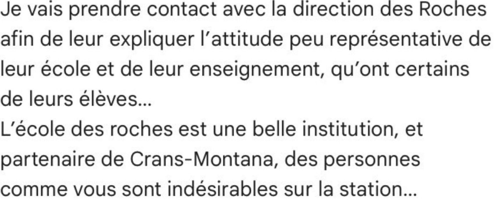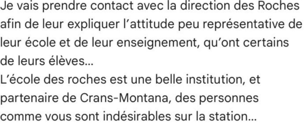Die „belle institution“ sei „partenaire de Crans-Montana“, „des personnes comme vous sont indésirables sur la station“.