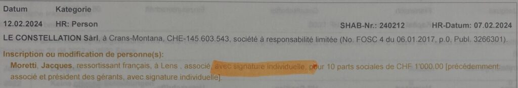 Der Fall ist sehr Komplex. Moretti hat ja zuerst nur gemietet. Der Umbau war 2015/2016. Haftung für das schnell brennbare Material, Moretti als Mieter aber auch noch der „unbekannte“ Eigentümer und Vermieter welcher Hauptverantwortlich ist was in seinem Eigentum verbaut wird. Dann Kauf der BAR von Moretti vom Eigentümer gem. Zeitung war das 2022. Somit wird dann Moretti Hauptverantwortlicher als Eigentümer im 2022 für die Decke und den Brandschutz. Das seine Frau Manager der BAR alleine ist schützt ihn nicht weil er gemäss Grundbuch Eigentümer ist. Eigentümer sind verantwortlich.