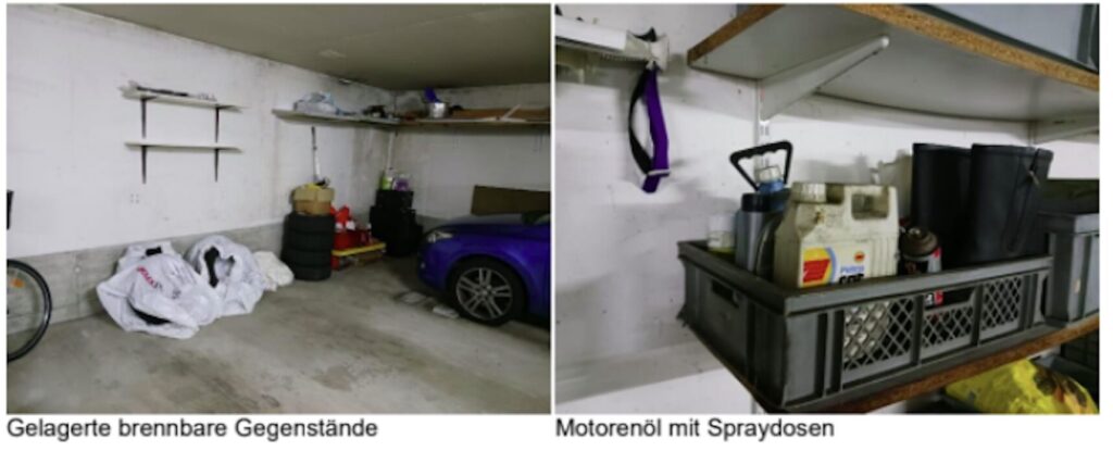 Brennt’s, dann zählen Sekunden: Überall liegen explosive Materialien, ein Fluchtweg ist nicht gekennzeichnet, am Garagentor keine Fluchttüre.