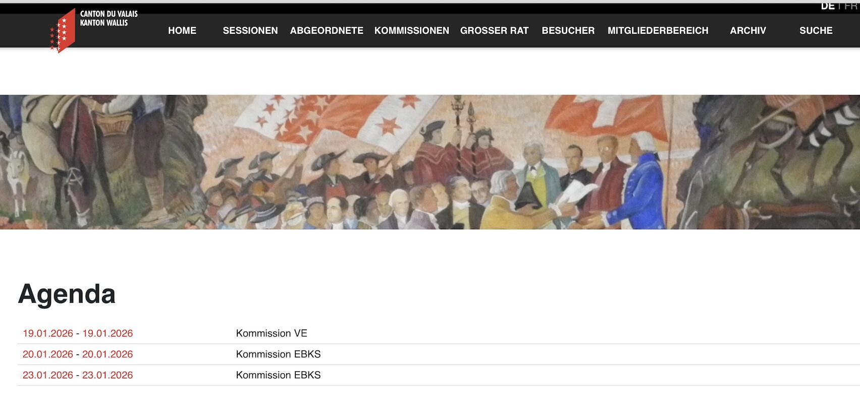 Wenigstens funktionierte die Webseite der Walliser Polizei. Diese läuft technisch unabhängig vom Kanton. Das gleiche gilt für das Walliser Parlament, den Grossen Rat.