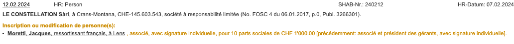 Jacques Moretti hingegen würde eine IV-Rente von monatlich knapp 7’000 Franken kassieren. Bis Anfang 2024 war Moretti als Co-Geschäftsführer des „Le Constellation“ im Handelsregister eingetragen.