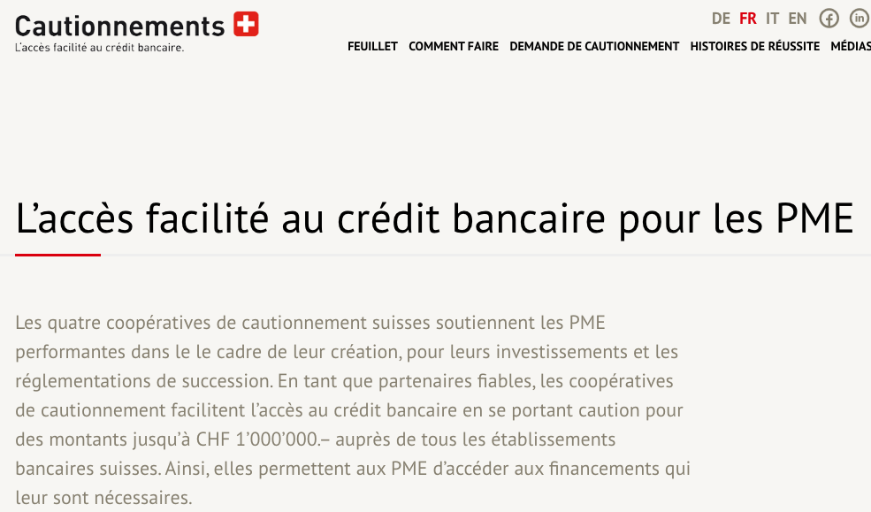 Schweizer. Allen voran die Walliser Kantonalbank und die UBS. Hilfe leistete die Genossenschaft für KMU-Bürgschaften. Diese bürgt für Kredite bis zu einer Million.