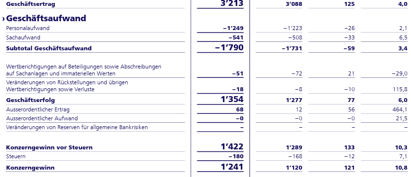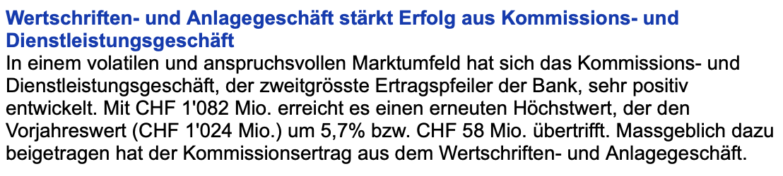 Die ZKB muss auch kein überteuertes US Business durchfüttern und der Einfluss von der anderen Seite des Teiches hält sich in Grenzen. Da geschäftet sich deutlich besser.