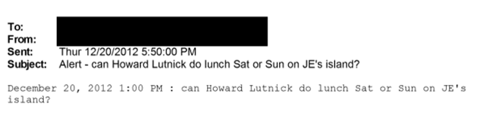 Oder am 20. Dezember 2012, um 13 Uhr: „Can Howard Lutnick do lunch Sat or Sun on JE’s island?“