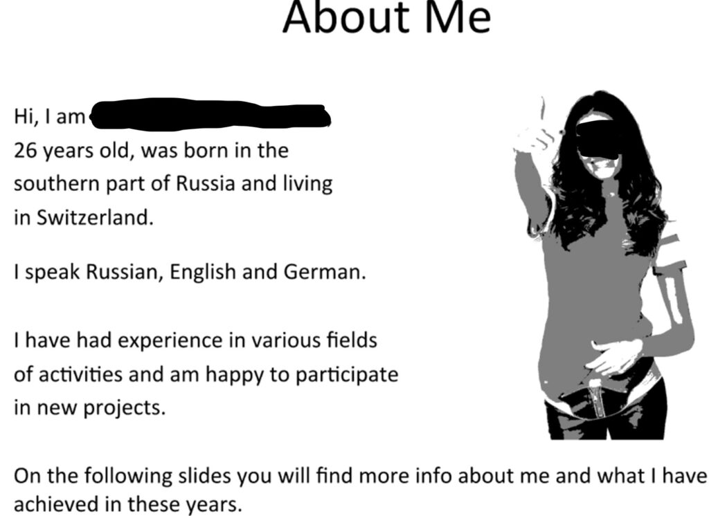 In ihrem „CV“ vor 10 Jahren legte die Neo-Bankerin ein besonderes Gewicht auf ihre Model-Karriere.