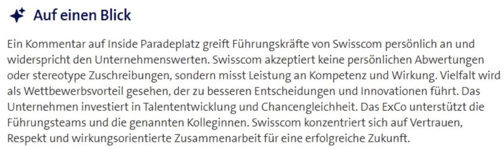 Ein Tipp an die Swisscom-PR Abteilung. Wenn ihr schon ChatGPT Eure Texte schreiben lässt, dann entfernt wenigstens noch die Bindestriche, sieht amateurhaft aus.
