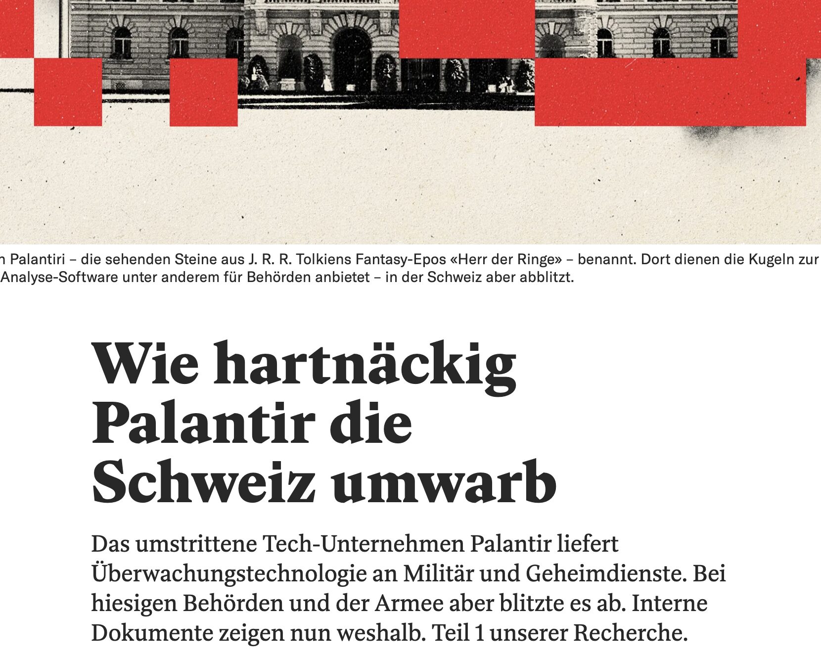 Bin zwar kein Republik-Fan, aber allein für diesen Eklat hat sich die Gründung der Republik schon gelohnt. Die Frau dahinter ist Adrienne Fichter, die schon ein paar gute IT/Intel-Recherchen brachte. Auch mutig von der Schweiz, Palantir so konsequent abgelehnt zu haben.