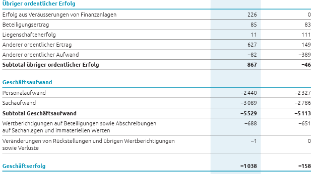 So verbuchten sie im letzten Jahr 627’000 Franken unter „anderer ordentlicher Ertrag“; dahinter stecken buchhalterische Aufwertungen von Finanzanlagen.