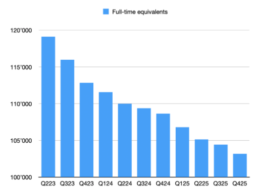 Der UBS-Kurs hat seit der letzten Quartalsrede von Ermotti 30% verloren. Die Integration hatte 2 Jahre zu lange gedauert. Wenn die inzwischen überflüssigen Leute heute raugeschmissen werden, dann sind sie noch ein Jahr auf der Payroll und viele erhalten erst noch eine Abfindung.