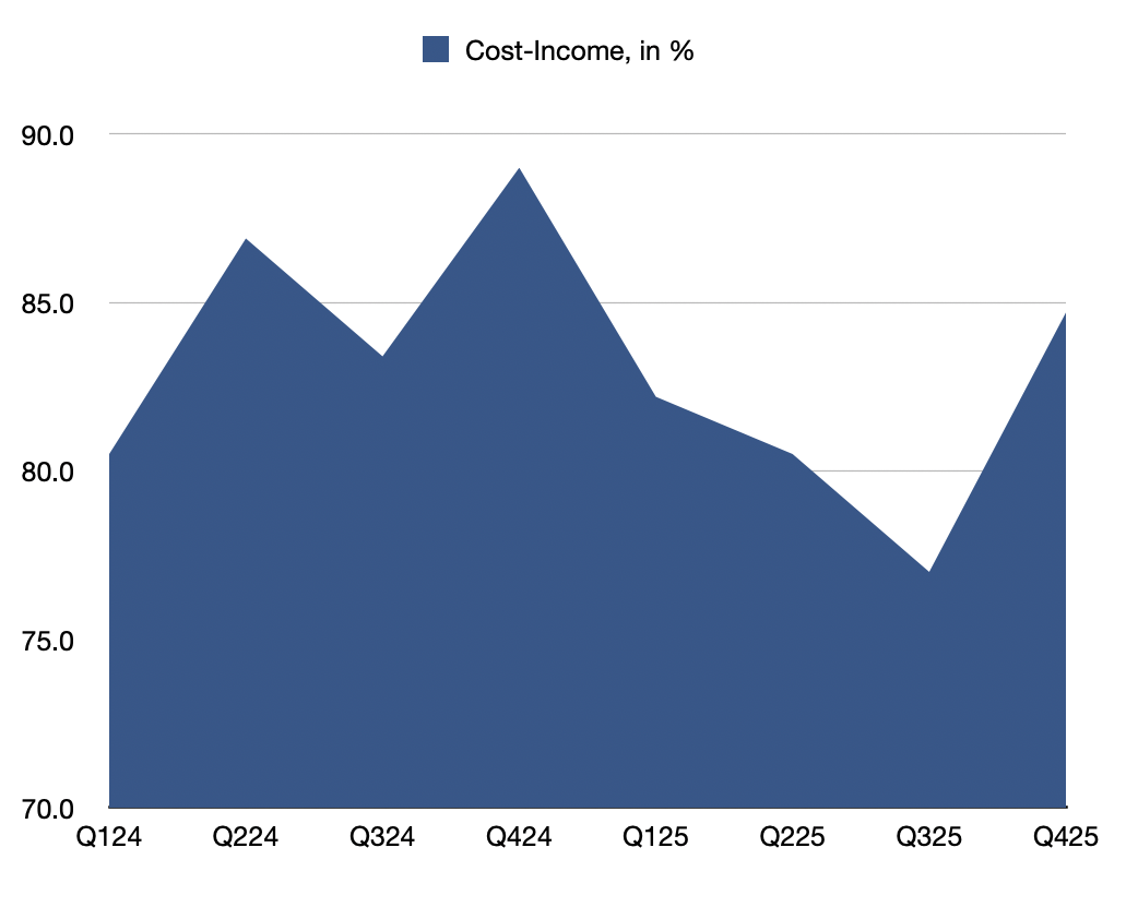 Der Monsterabbau bei der „Monsterbank“ ist die Folge eines komplett aus dem Lot geratenen Kosten-Ertrags-Verhältnisses. Statt den angestrebten 67 lag dieses Ende 2025 bei fast 85 Prozent.
