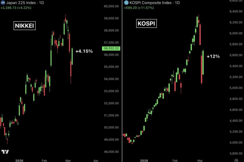 Der KOSPI schiesst nach oben, Schwergewichte wie Samsung Electronics und SK Hynix ziehen den Index mit zweistelligen Rebounds.