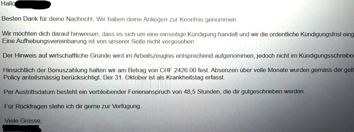 „Wir möchten betonen, dass wir bei allen Kündigungen allen arbeitsrechtlichen Pflichten vollumfänglich nachkommen – auch bei dieser.“
