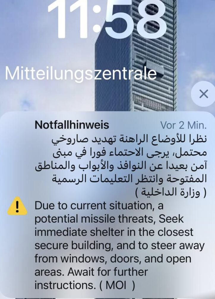 Der Iran hat aber schon acht Marschflugkörper gegen die Emirate verschossen. Sie wurden alle neutralisiert.