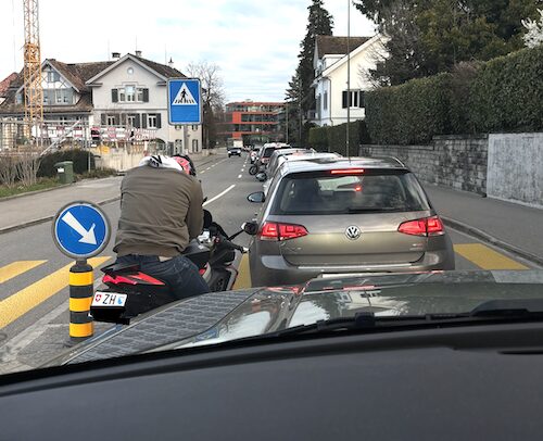 Das Unheil habe ich im Jahr 2000 schon kommen sehen,überall Verengungen ,Hindernisse ,grosse Busse die dir entgegenkommen,Kurven die für diese Grössen nicht geschaffen sind! Herrliberg ,Meilen ADE !