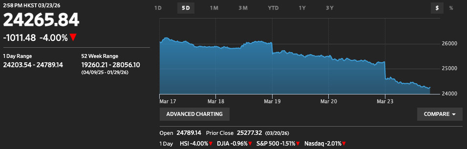 Der Nikkei verlor 3,5 Prozent, der Hang Seng über 4 Prozent.