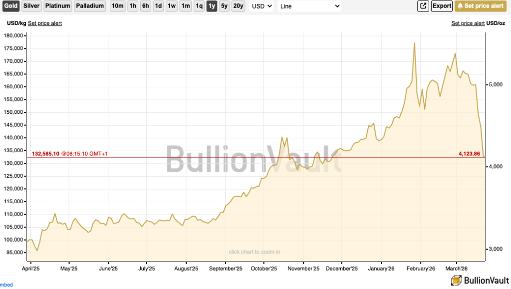 Ein Alarmzeichen ist das einbrechende Gold. Der scharfe Rückgang, der das zuvor erfolgte historische Hochschnellen seit Anfang Jahr ausradiert hat, offenbart den Stress bei vielen Anlegern.