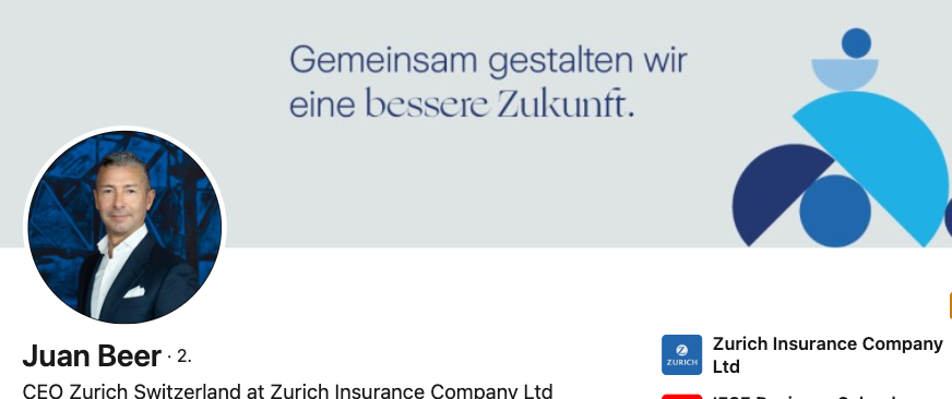 Juan Beer nennt sich weiterhin „CEO Zurich Switzerland“. Sein LinkedIn hat der Manager unverändert gelassen.