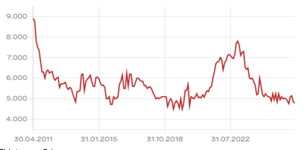 Das Hin und Her bei den Beteiligungen verunsichert die NZZ-Aktionäre. Deren Titel dümpelt seit einem Jahr bei 5’000 Franken. Vor drei Jahren waren es 7’000.
