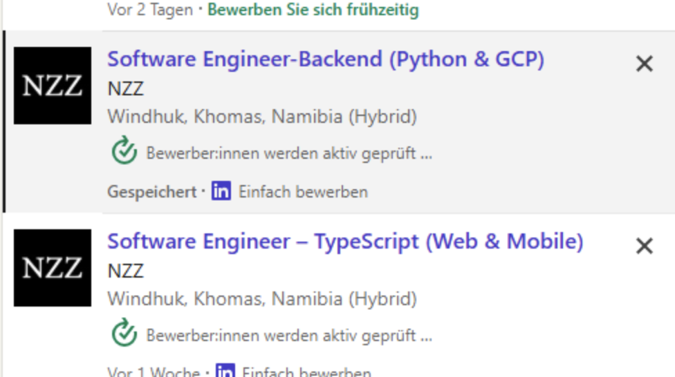 Das Blatt sucht in Namibia zwei Software-Entwickler. Die Besten kriegen dort bis zu 20’000 Dollar.